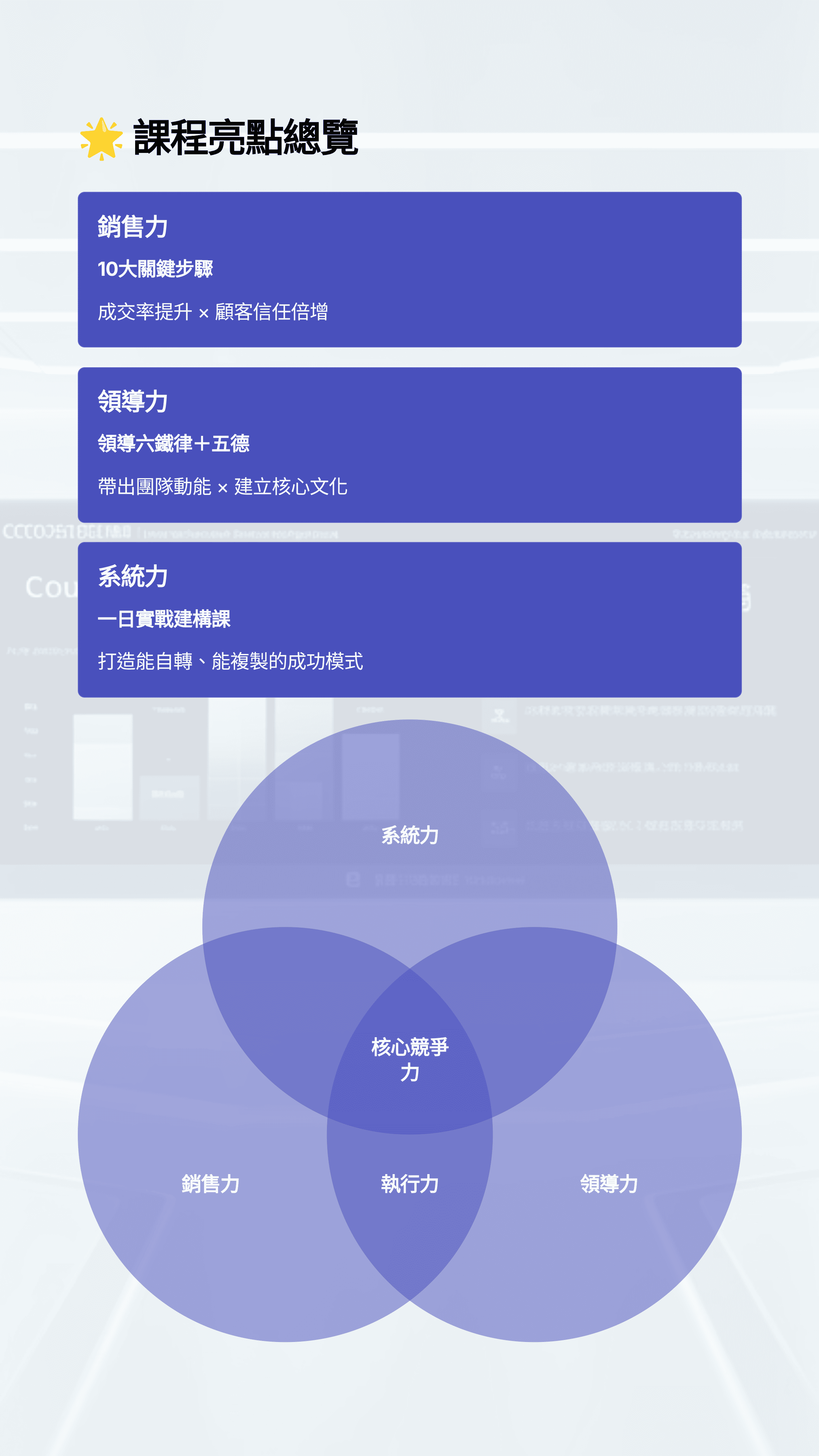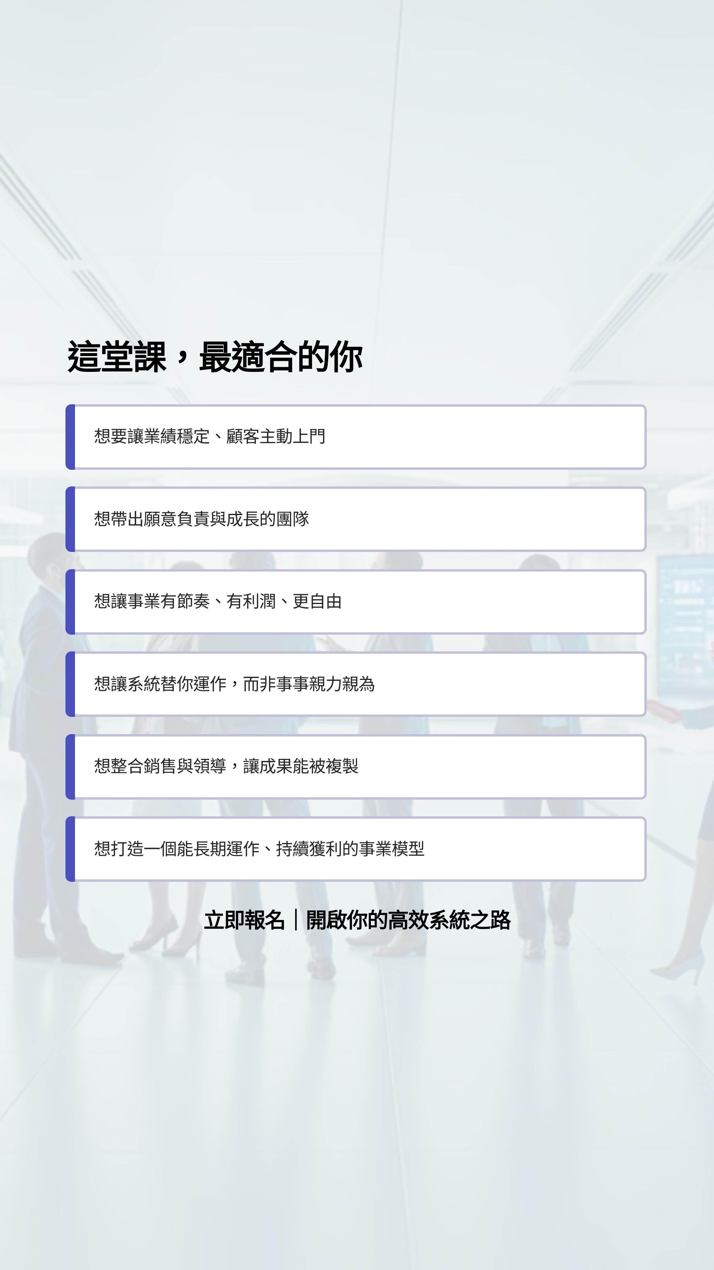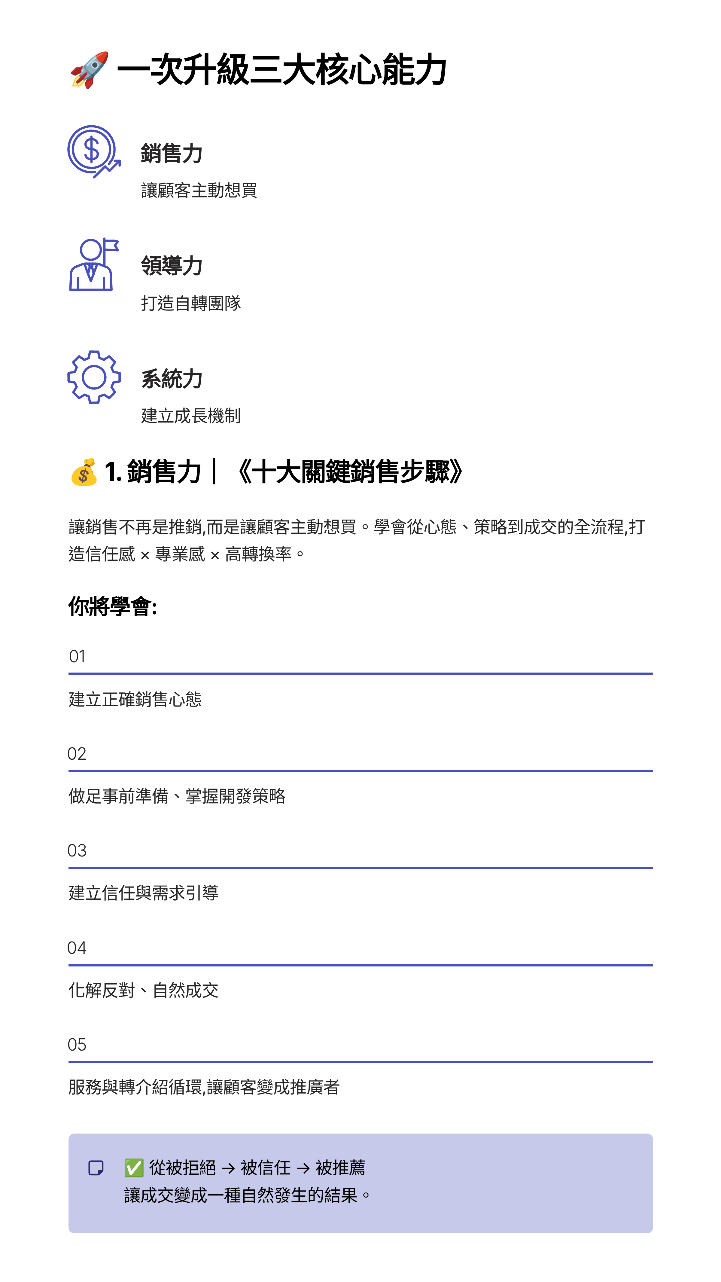✅ 三大系統課 × 專屬陪跑 × 實戰落地